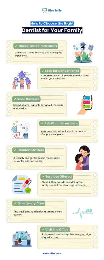 Ensure they accept your insurance and have convenient hours. Hiring dental specialists who prioritize your family’s comfort and long-term oral health is essential. Book an appointment today to give your family the best dental care!
