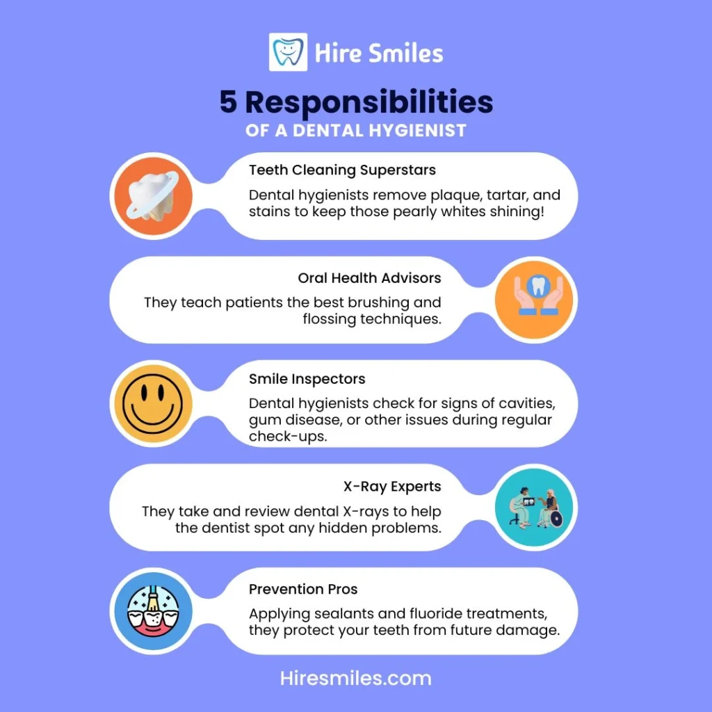Dental hygienists don’t just work solo. They’re a big deal when it comes to helping dentists during procedures. Whether it’s prepping patients, sterilizing instruments, or taking impressions, they’re the ultimate team players. Basically, they’re like the Robin to the dentist’s Batman. (But way cooler, if you ask us.)